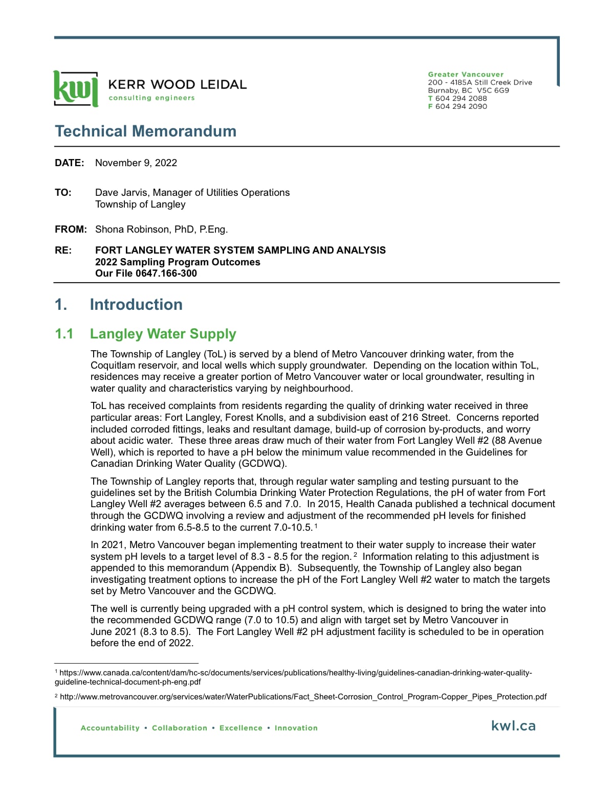 The Provincial Water Sustainability Act and the Groundwater Protection Regulation (GWPR) require that wells be drilled away from potential contamination sources, which include water bodies that can act as pathways for contaminants, such as runoff from a dairy farm immediately adjacent to the Salmon River that Fort Langley Well No 2 was drilled a few feet from. There are concerns regarding the long-term impact of wells drilled too close to rivers and creeks, both in terms of potentially reducing those watercourses’ water levels and even altering the flow of water, which was a concern based on the proximity of the former Fort Langley well to the Fraser River. If we were to realistically look at redrilling a new well in Fort Langley that would draw from the same vulnerable aquifer as the previous one, we would have to acquire a new site, driving up the costs even more.